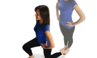 Με τα χέρια στη μέση, κάντε ένα μεγάλο βήμα μπροστά, λυγίστε τα γόνατα και κατεβάστε τη λεκάνη, κρατώντας το σώμα σας ευθυγραμμισμένο και κατακόρυφο. Λυγίστε το μπροστινό σας γόνατο τόσο ώστε η κνήμη να είναι κάθετη στο δάπεδο και ο μηρός παράλληλος με αυτό. Μείνετε εκεί για 1-2΄΄ και επανέλθετε αργά στην αρχική θέση. Κάνετε 8-12 επαναλήψεις για κάθε πόδι, εναλλάξ. Με την άσκηση αυτή θα γυμνάσετε παράλληλα και τους μηρούς.